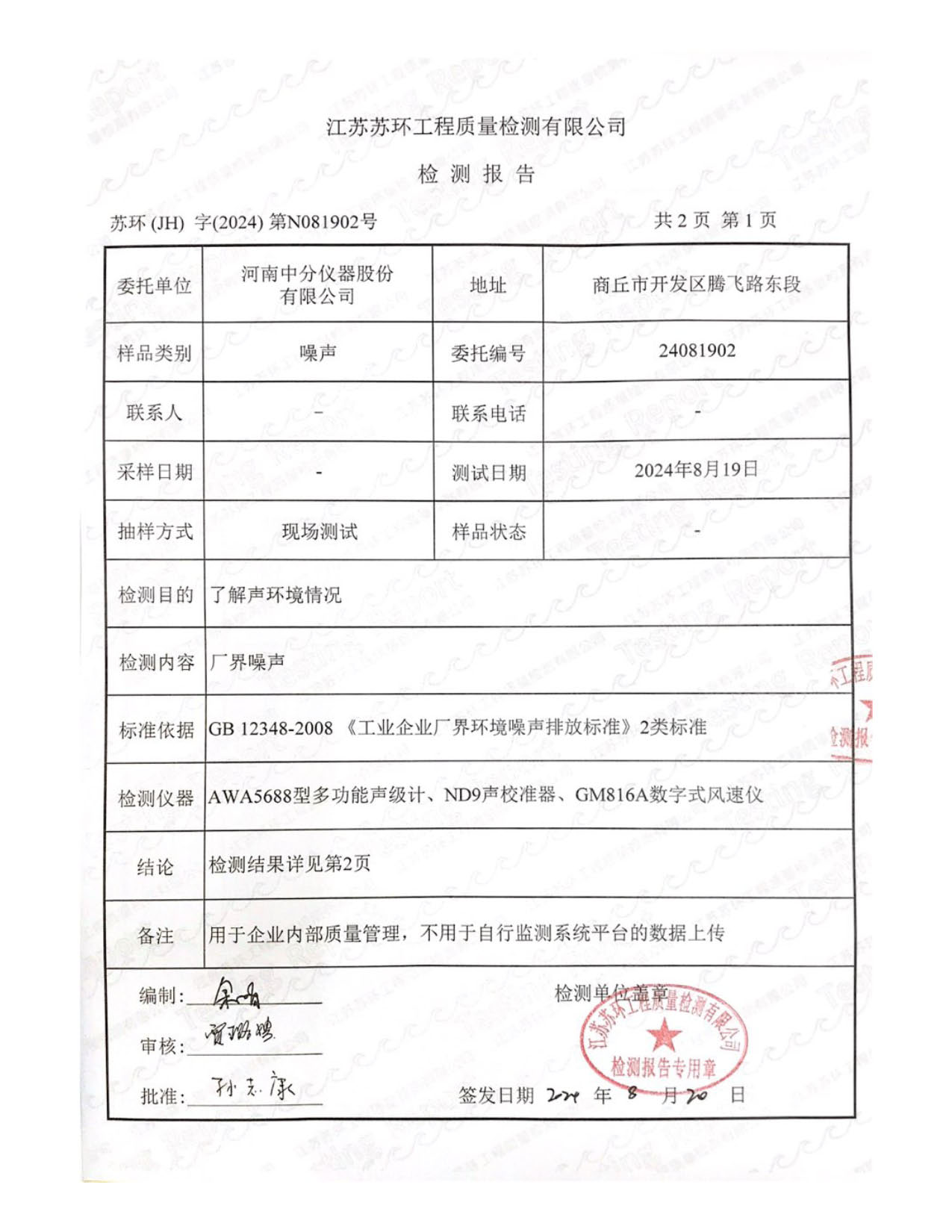 2024年度噪聲檢測報(bào)告